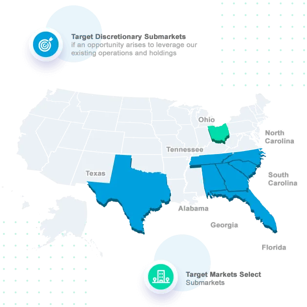 We identify early opportunities in markets with growing populations and multiple employment opportunities